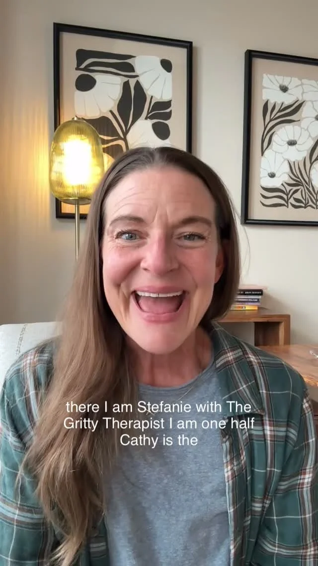 We’re Stef + Cathy—therapists, practice owners, moms, + the voices behind The Gritty Therapist.